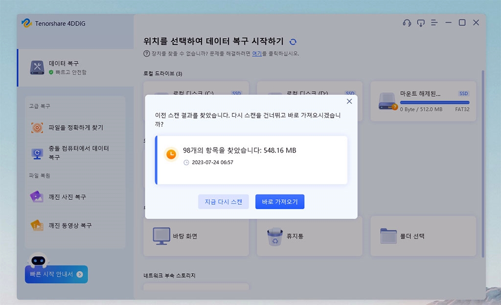 그래서 삭제 파일 복구 프로그램인 4DDiG을 써야겠죠?