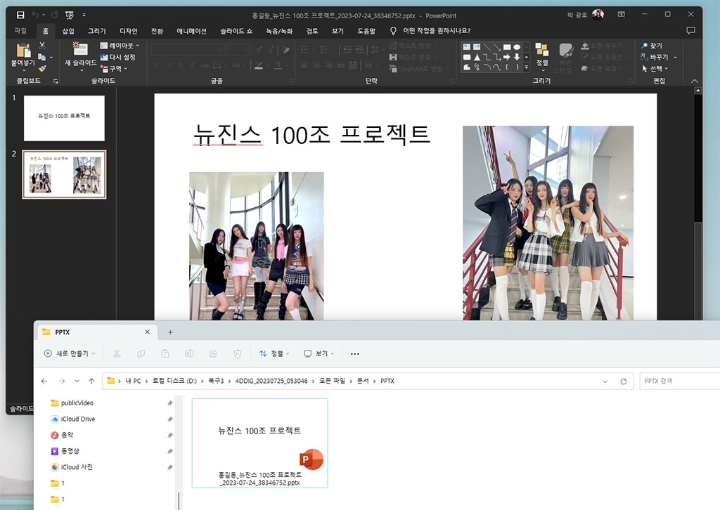 참고로 테스를 위해서 위의 뉴진스 사진과 PPT 파워포인트, 동영상을 넣고 삭제하였습니다. 1차는 사진만 삭제하였습니다.