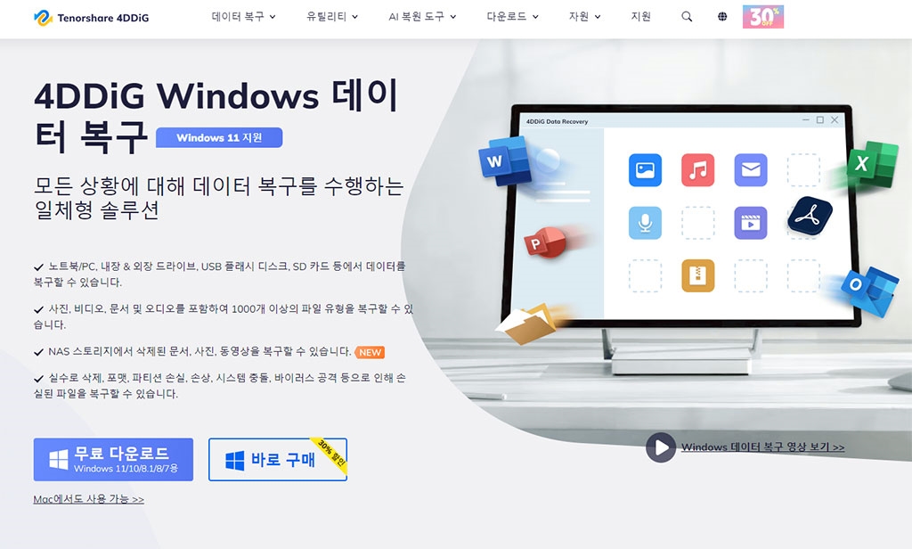[공식] Tenorshare 4DDiG Windows 데이터 복구: 손실된 데이터 복구