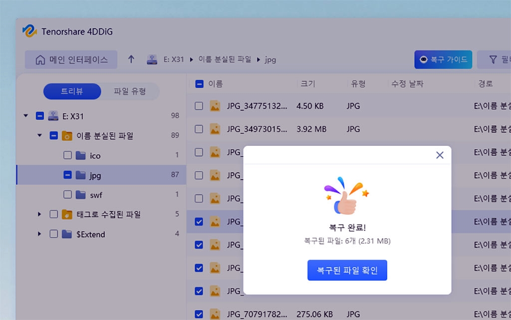 정상적으로 6개의 파일이 복구되었습니다.