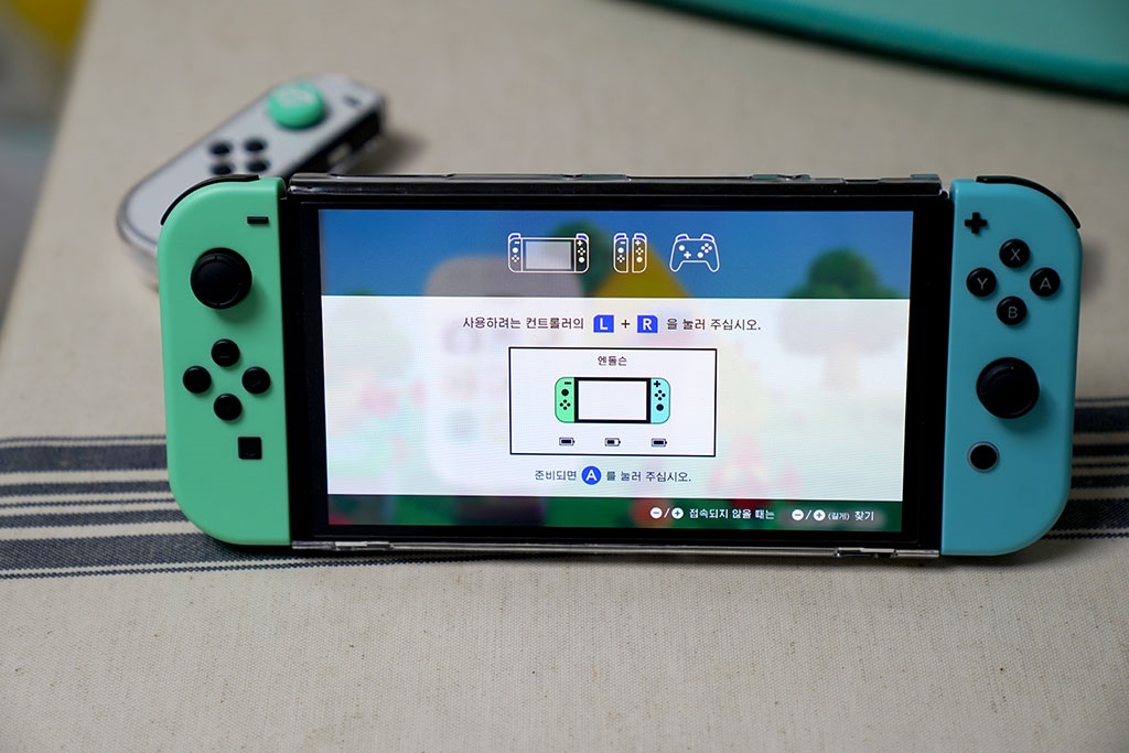 기존에 닌텐도 스위치 OLED 화이트를 구매해서 동물의 숲 조이콘이 너무 탐이 났는데, 이번에 호환 조이콘도 구매해서 이쁘게 매칭이 되네요.