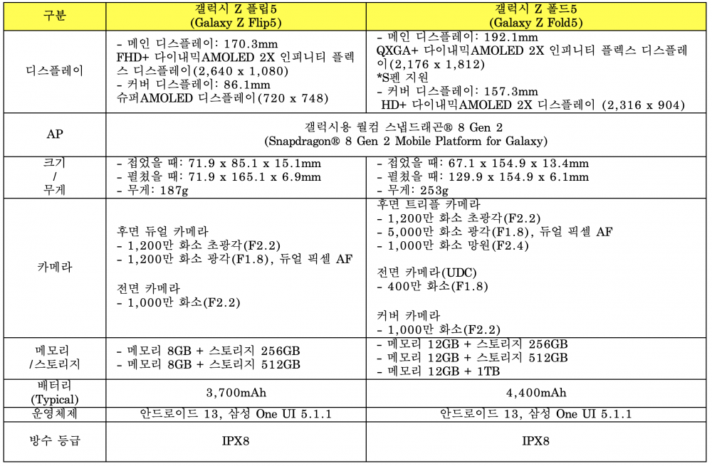 삼성전자가 올 하반기에 삼성 언팩 2023에서 공개한 '갤럭시 Z플립5'와 '갤럭시 Z폴드5'에 대해서 상세하게 살펴보겠습니다. 삼성전자의 전략 플래그십인 갤럭시 Z 플립5와 폴드5는 이전 모델과 비교하여 몇 가지 새로운 스펙이 포함되었고 디자인 변경과 개선도 있었습니다.