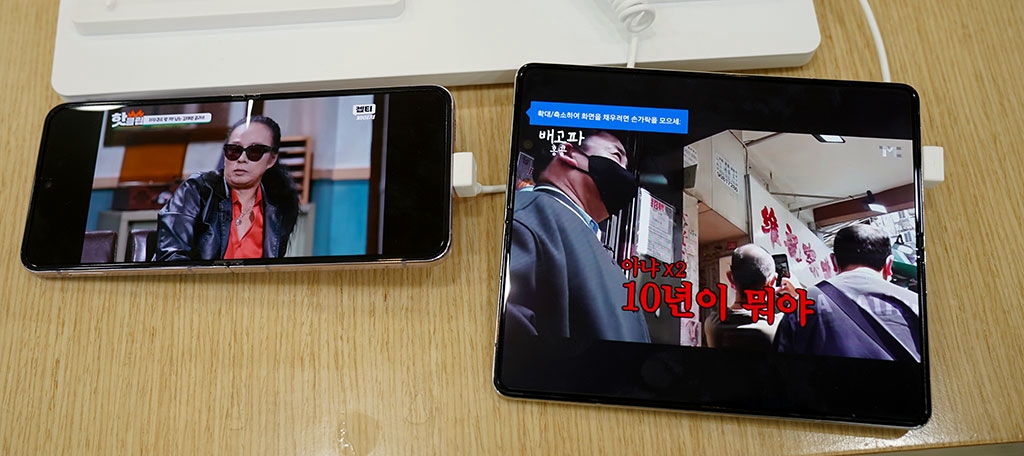 폴드5의 화면은 펼쳐서 7.6인치인데, 플립5의 펼친 6.7인치와는 차이나 납니다.