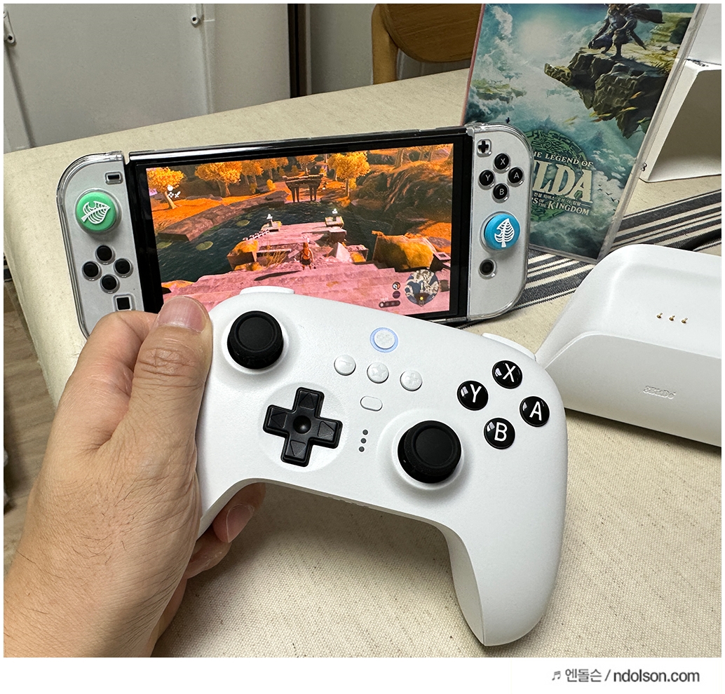 닌텐도 스위치와 PC에서 게임을 많이 하시는 분이라면 추가 게임 패드로 8BitDo 얼티메이트 NS 컨트롤러로 하나 더 구매하시면 젤다 등의 게임을 편하게 블루투스/2.4G로 즐길 수 있습니다. 이쁘고 가격대비 가성비가 좋은 게임패드네요.