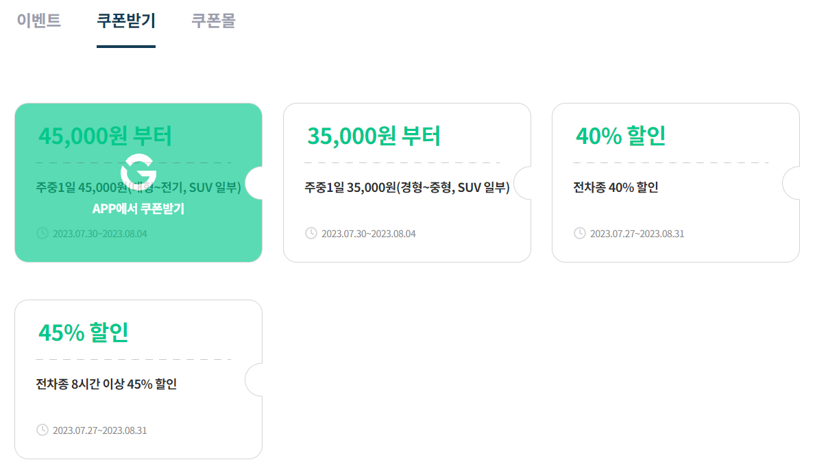 그린카 쿠폰은 앱에서 받으세요.