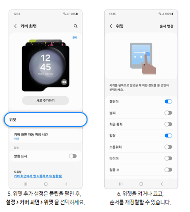갤럭시Z 플립5 커버 위젯 설정 하는 방법