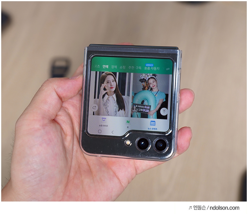 또 플립5가 이제는 완전히 밀착되는 플렉스힌지로 빈틈이 없습니다. 위젯도 커버화면에서 바로 사용할 수 있어서 편하네요. 음악재생이나 동영상 재생, 웹페이지 보기 좋아요.