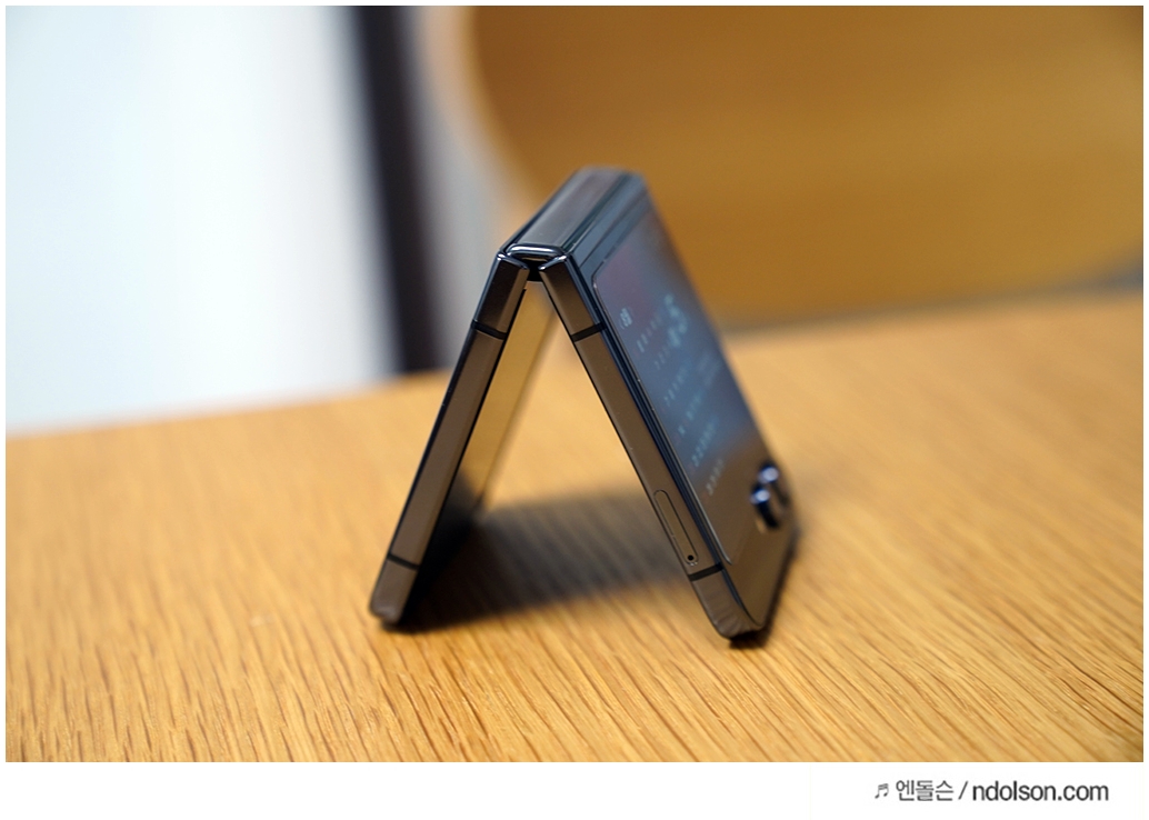 카메라 각도 조절은 플립5가 아주 좋습니다. 힌지로 프리스탑이 되서 원하는 각도 조절이 가능합니다. 세워두고 촬영할 수 있어 플립5의 카메라 찍는 재미가 더 좋습니다.