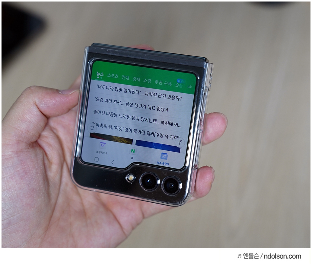 개인적으로 플립5는 접었을 때 가장 이쁜 스마트폰이네요. 갤럭시Z 플립5는 접어서 3.5인치로 즐기고 펼쳐서 6.7인치로 즐길 수 있어 거의 만능입니다.
