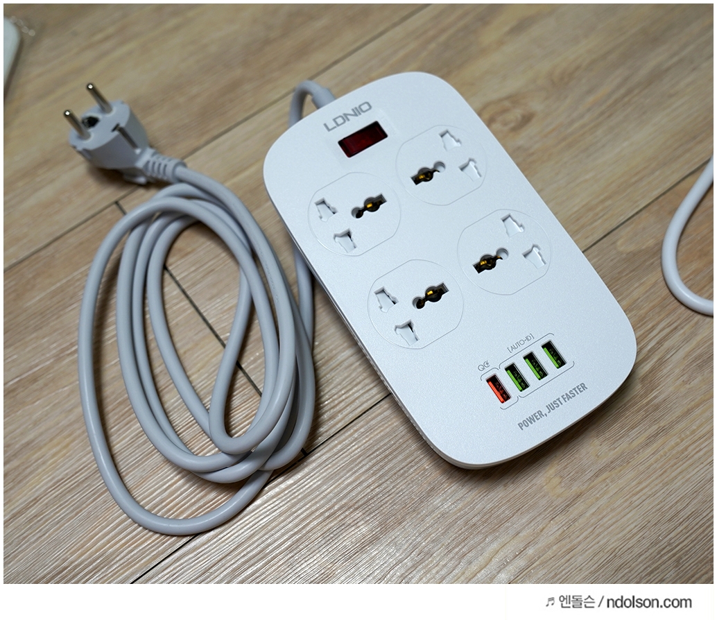 또 고속 충전 지원으로 스마트폰이나 태블릿과 같은 기기들을 빠르게 충전하고자 한다면 LDNIO 멀티탭의 USB포트 4개를 활용하기 좋았습니다.