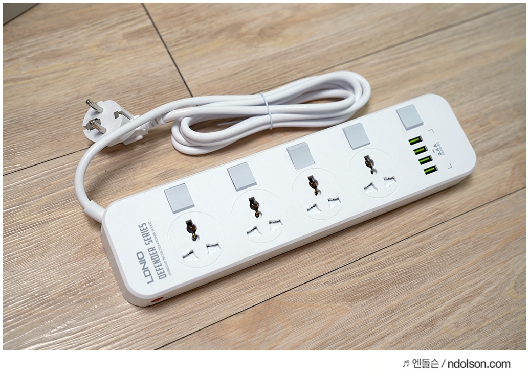 또 이번에 구매한 제품은 US, EU 모두 되는 호환 콘센트 멀티탭으로 좋습니다. USB 포트도 4개 있어 닌텐도 스위치, 태블릿, 아이패드, 아이폰 모두 충전할 수 있는 다용도 멀티탭입니다. LDNIO 브랜드의 멀티탭은 기능과 편의성이 괜찮네요.