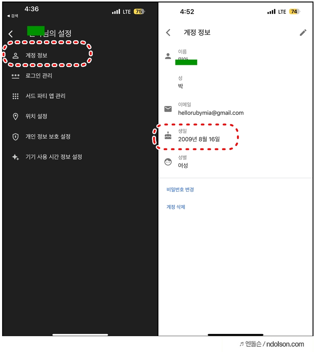 -> 위의 방법을 추천합니다! 자녀의 구글 계정의 날짜를 바꾸는 게 편하네요.