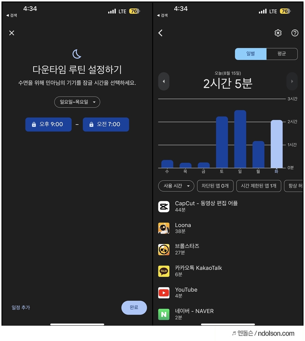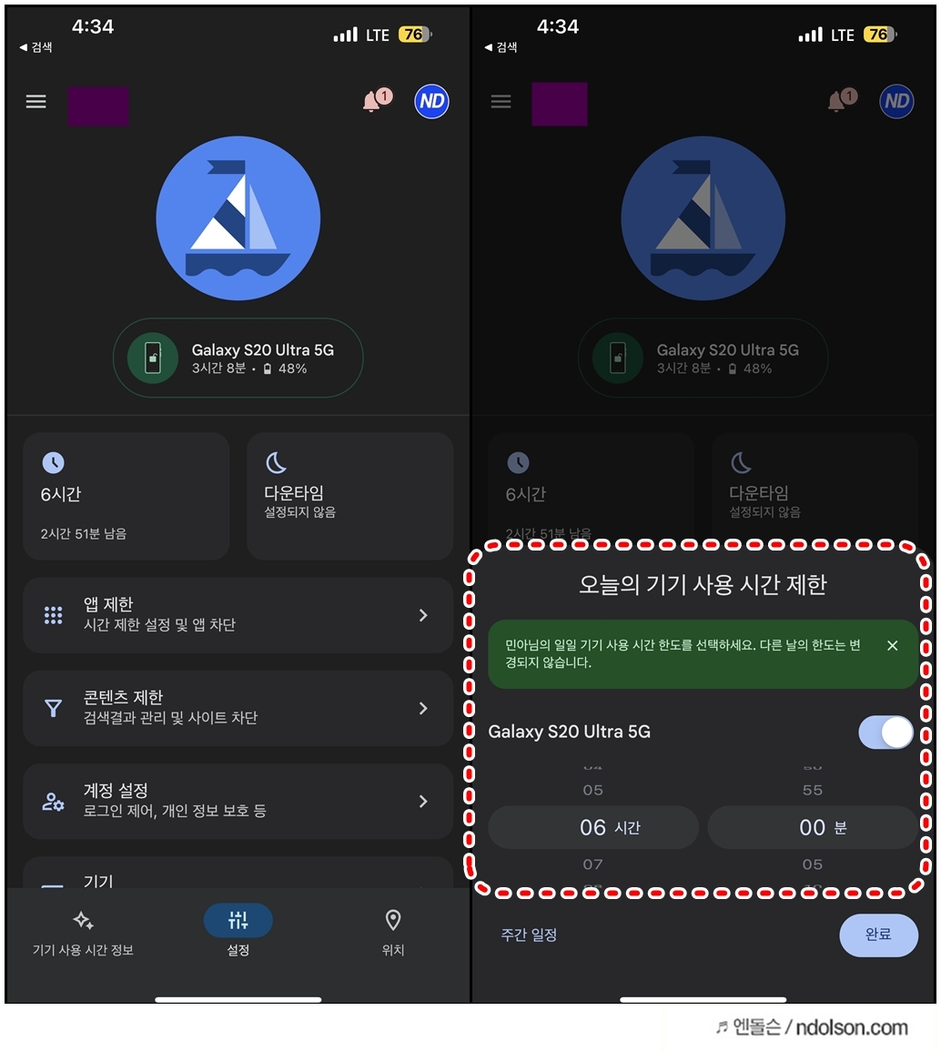 부모의 구글 페밀리 링크만 있으면 키즈폰이 필요 없습니다. 자녀의 스마트폰 사용시간도 제한이 가능합니다.