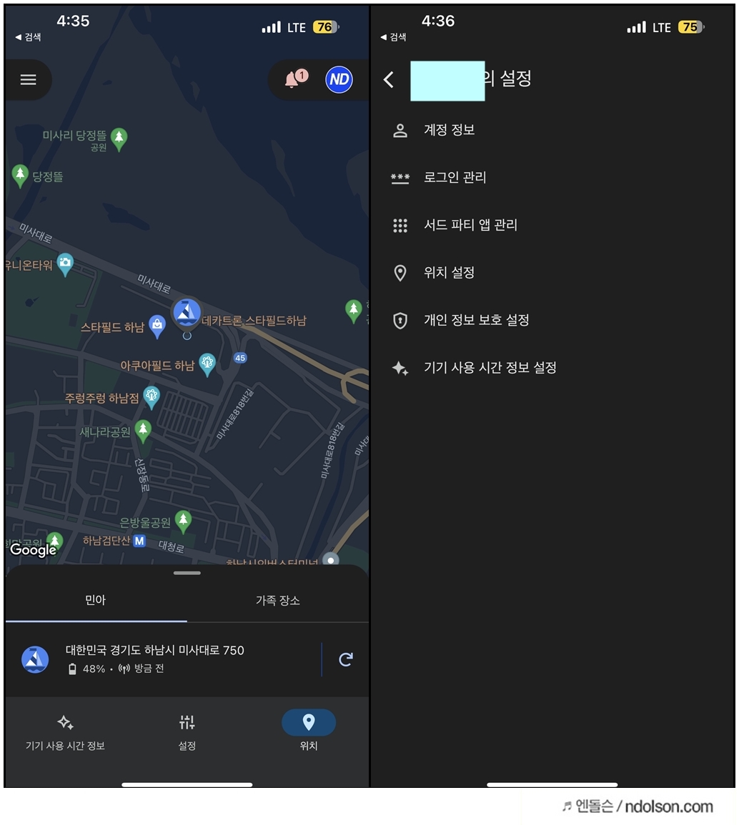 또 자녀의 현재 GPS 위치도 정확하게 실시간으로 업데이트됩니다.