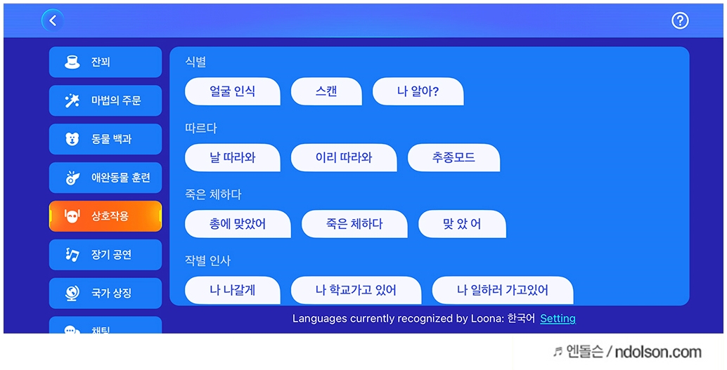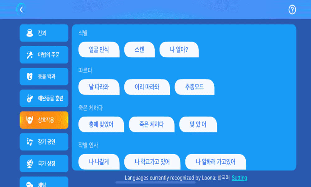 이제 앱 및 루나로봇을 한국어 설정을 해서 쓰면 됩니다.