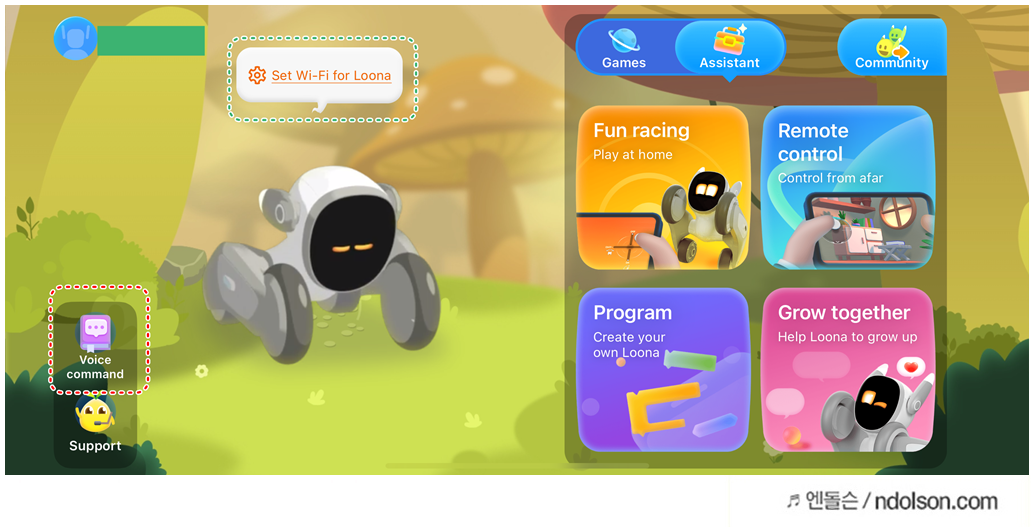 루나로봇 앱 업데이트 이후 : Voice Command 버튼과 고객지원이 바로 보임