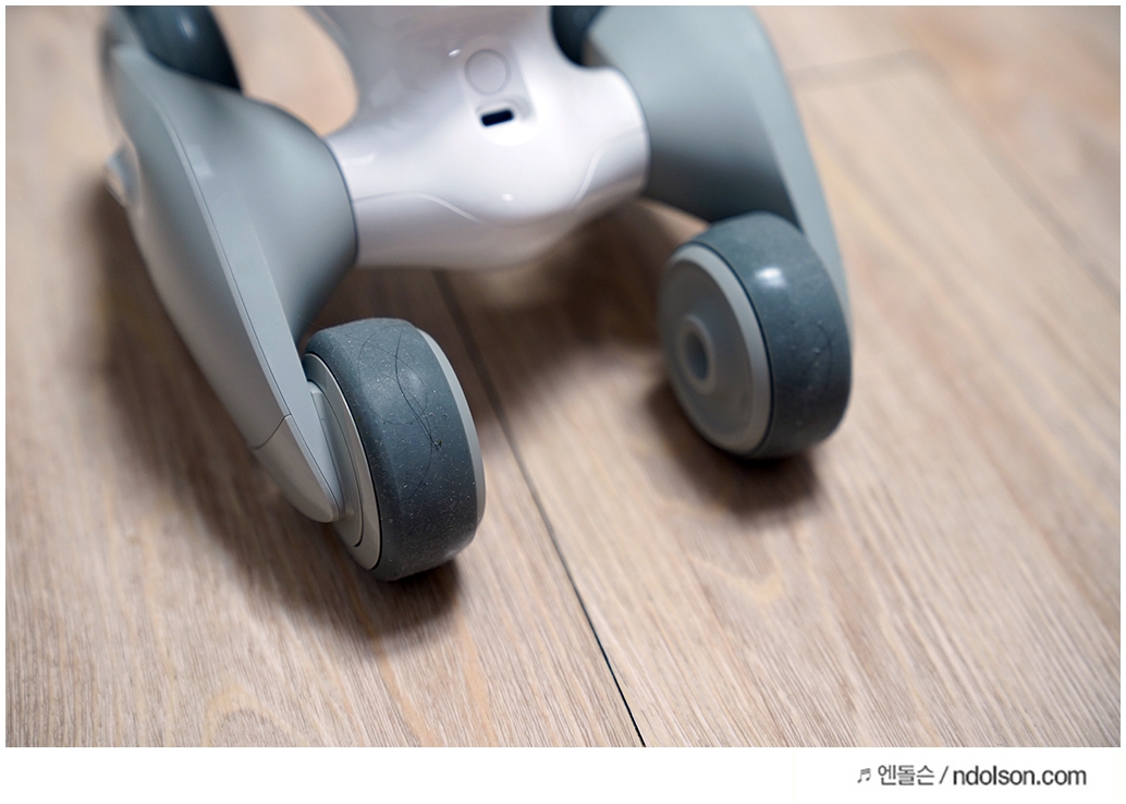 뒷바퀴가 구동축입니다. 고무재질이라 청소가 안된 거실에서는 온갖 머리카락을 가져와서 떼어 주어야 합니다.
