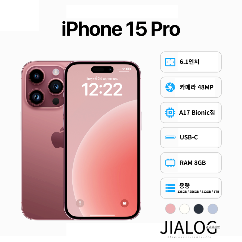 - 색상: 블랙 티타늄, 화이트 티타늄, 블루 티타늄, 내추럴 티타늄