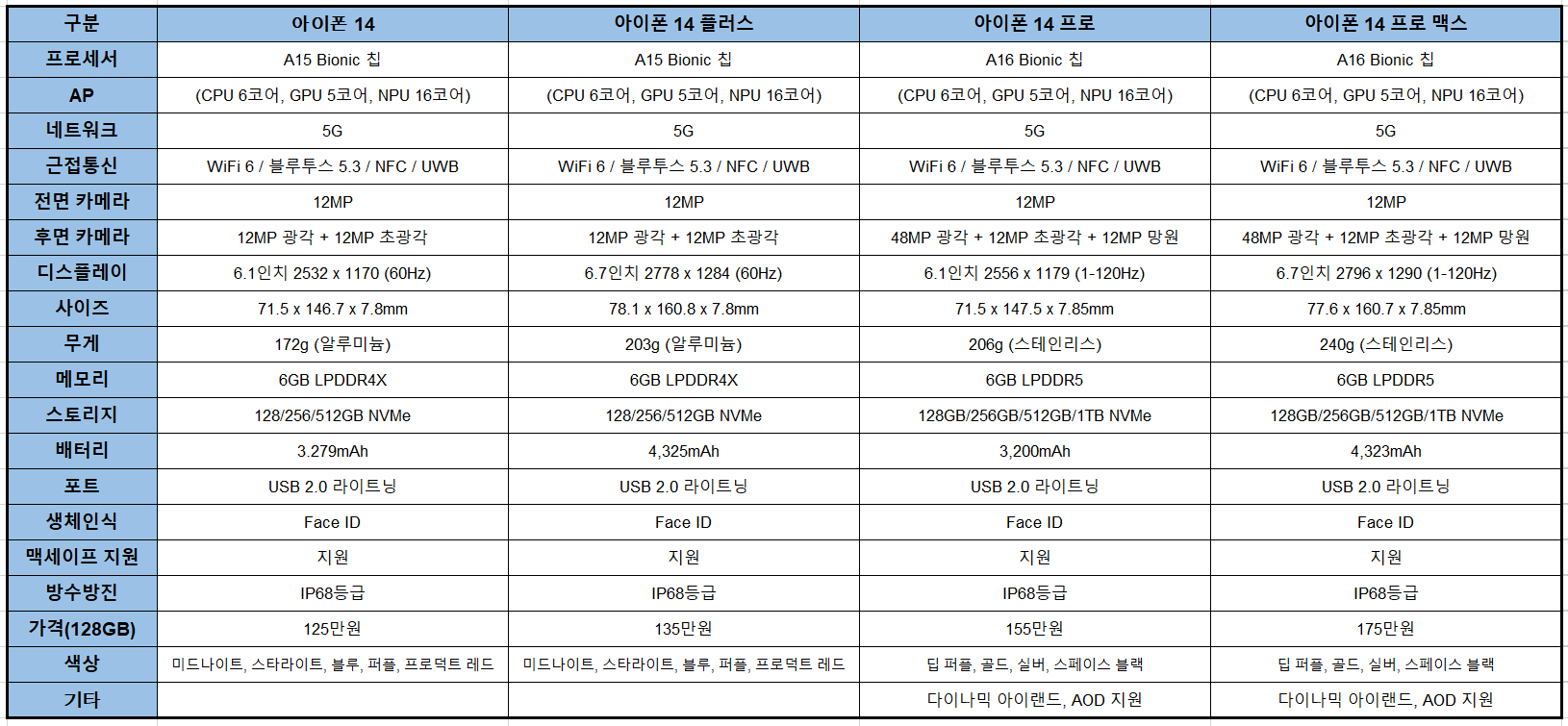 그럼 아이폰14 스펙과 비교하면 어떨까요?