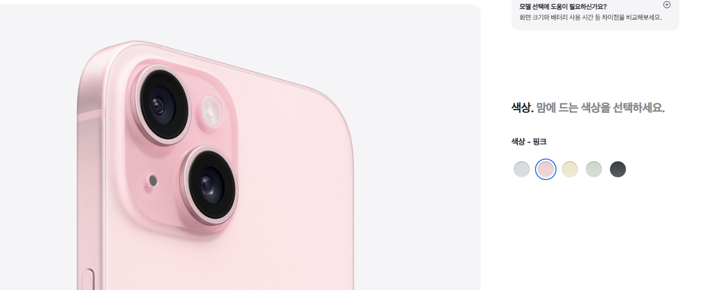 개인적으로 화이트 티타늄이 가장 마음에 드네요. 또 일반 모델은 핑크과 옐로우가 마음에 듭니다. 뭐 색상은 개인 취향이니깐 원하는 아이폰15 색상으로 골라보세요.