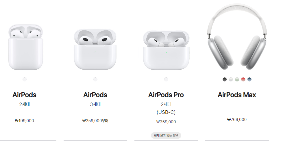 에어팟 프로 2세대는 35만원 이군요. 비싸지만 한번 사면 배터리가 고장날 때까지 잘 쓰고 있어서 너무 좋습니다. 에어팟 프로 1세대도 아직 현역으로 잘쓰고 있으니깐 만족합니다.