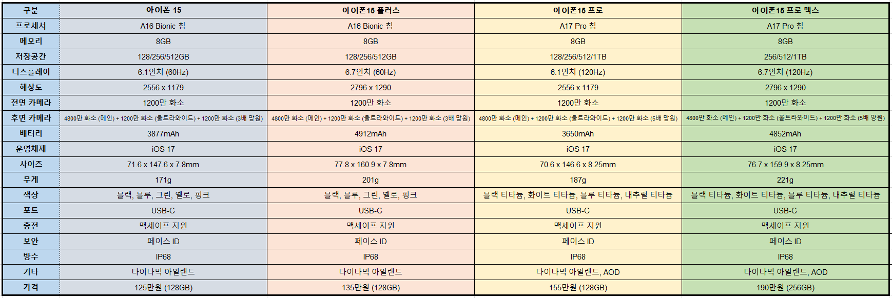 아이폰15 급나누기 스펙