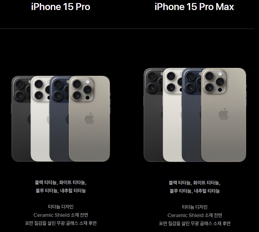 아이폰 15 프로 모델은 블랙, 화이트, 블루, 내추럴 등 4가지 색상으로 출시됩니다.
