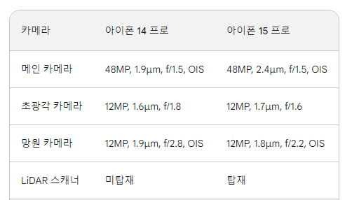 아이폰 15 프로 VS 아이폰 14와의 비교