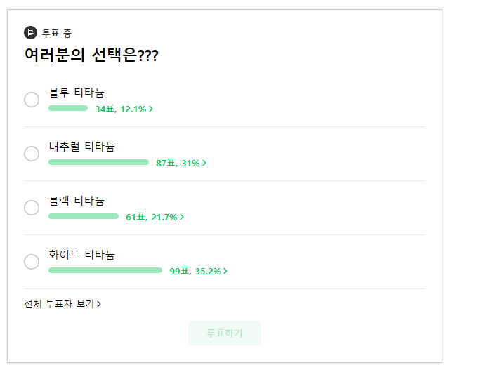 아이폰15 프로 선호하는 색상 투표 결과, 블랙, 화이트, 블루, 내추럴 티타늄