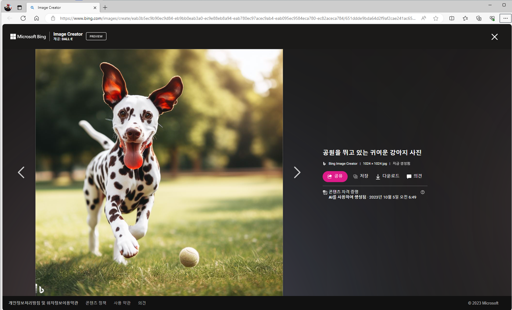 빙챗이 생성한 인공지능 이미지는 다운로드도 가능합니다. 원하는 이미지를 손쉽게 제작할 때 유용하겠어요!