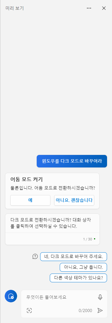 복잡한 윈도우 설정을 이제는 채팅하듯 물어보고 설정하시면 됩니다.