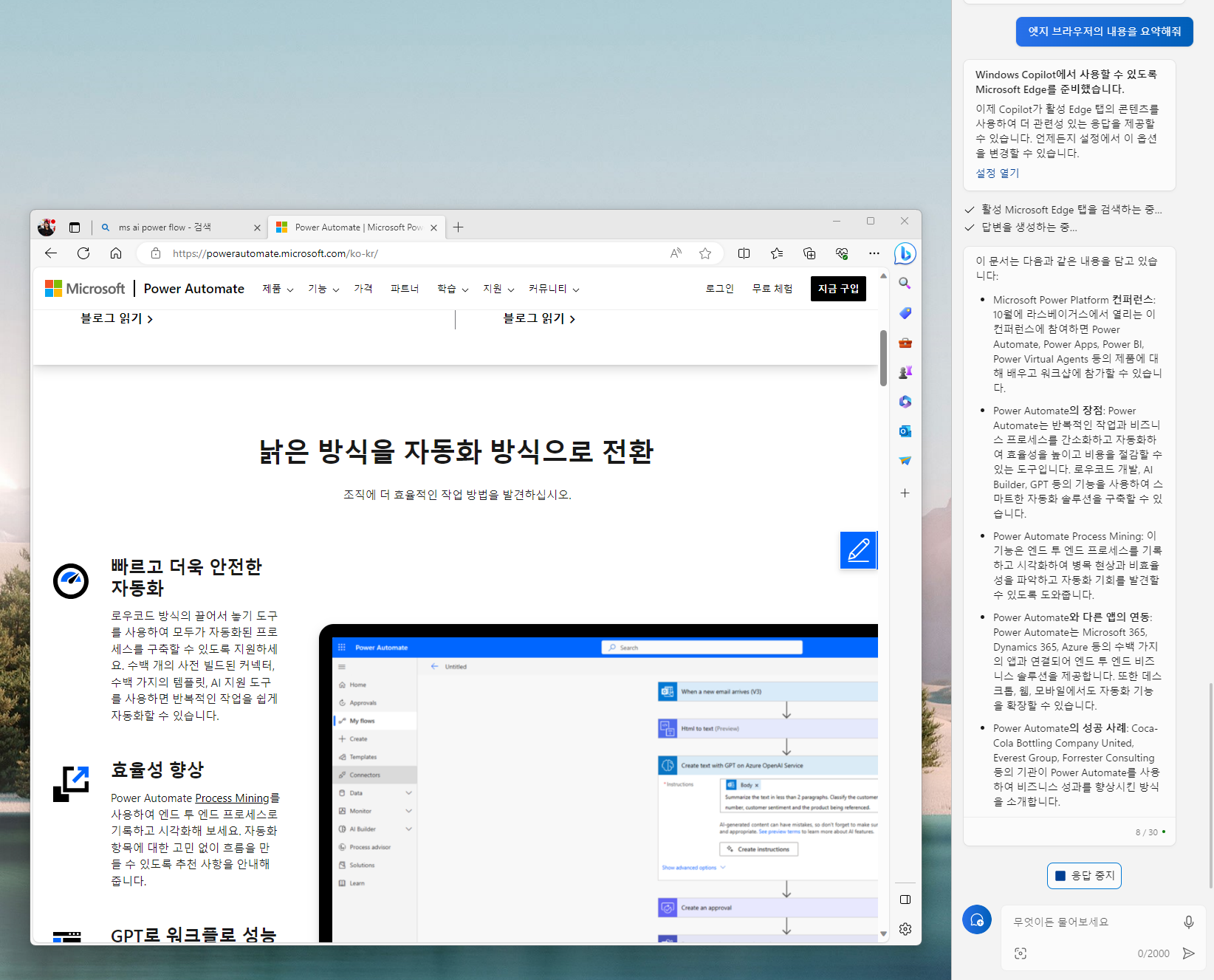 윈도우 코파일럿 기능 : 웹 페이지 요약 및 빠른 작업