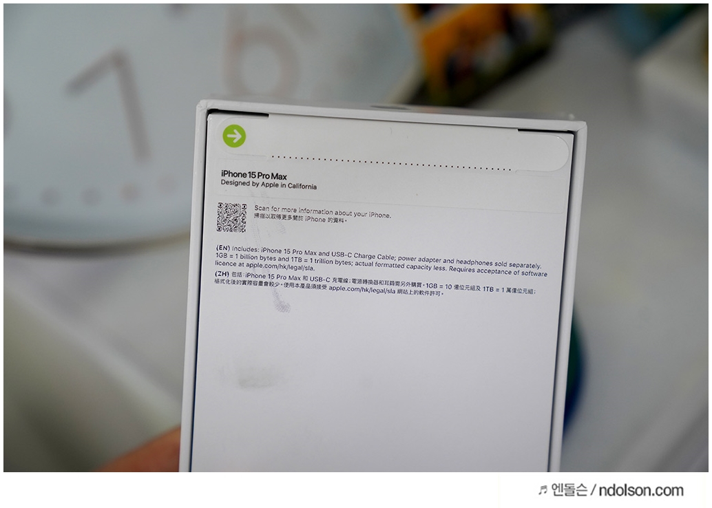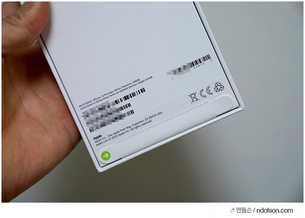 필자가 홍콩 직구로 구매한 것은 아이폰 15 프로맥스 화이트 티타늄 256GB 모델이며, 모델명은 A108 입니다.