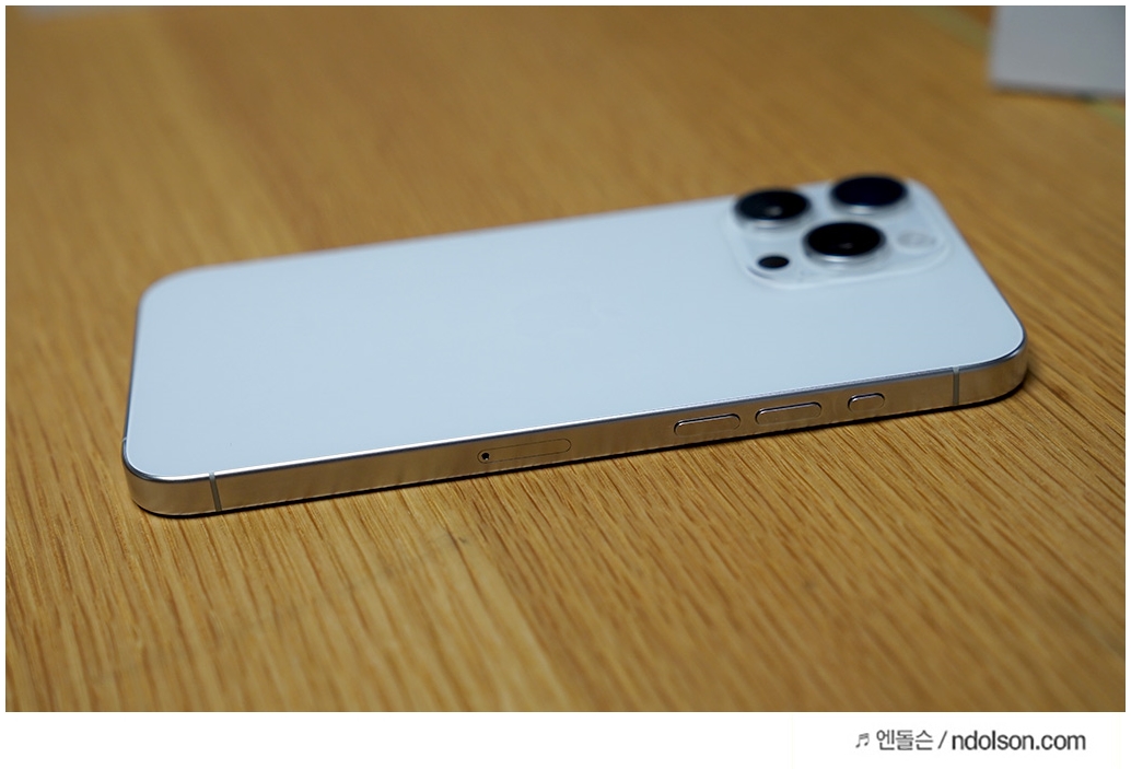 이번에 국내 아이폰 15 출시일인 10월 13일보다 빠르게 홍콩 해외직구로 아이폰 15 프로맥스를 구매하였습니다. 그러면서 전에 사용하던 유플러스 통신사에서 구매한 아이폰14 프로맥스와 잠깐 비교해 보았습니다. 아이폰 15 프로맥스 화이트 티티늄을 구매하여 이번에는 애플의 신규 컬러인 내추럴 티타늄 색상 대신 화이트로 깔끔히 정했습니다. 실버 느낌도 나지만 더 밝고 깔끔해서 무광에 이쁜 느낌이 듭니다.
