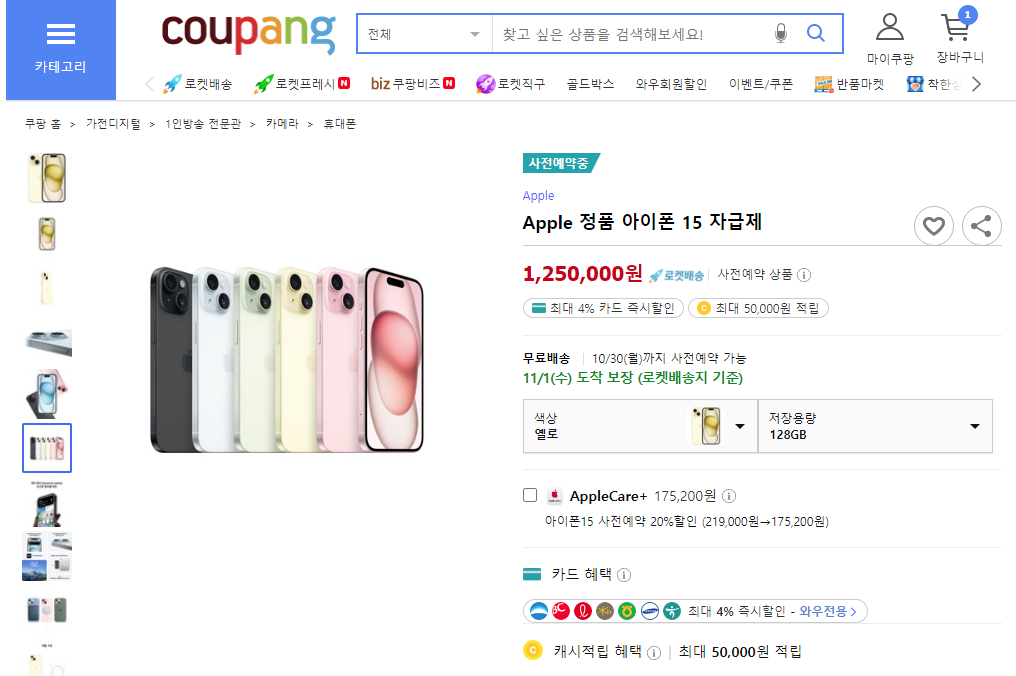 아이폰15 쿠팡 2차 사전예약 구매링크 (물량확보)