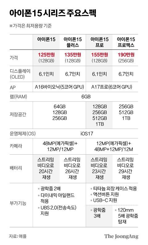 아이폰15 시리즈 전체 스펙을 비교해 보면, 나에게 맞는 아이폰 15를 고르기 편하실 겁니다.
