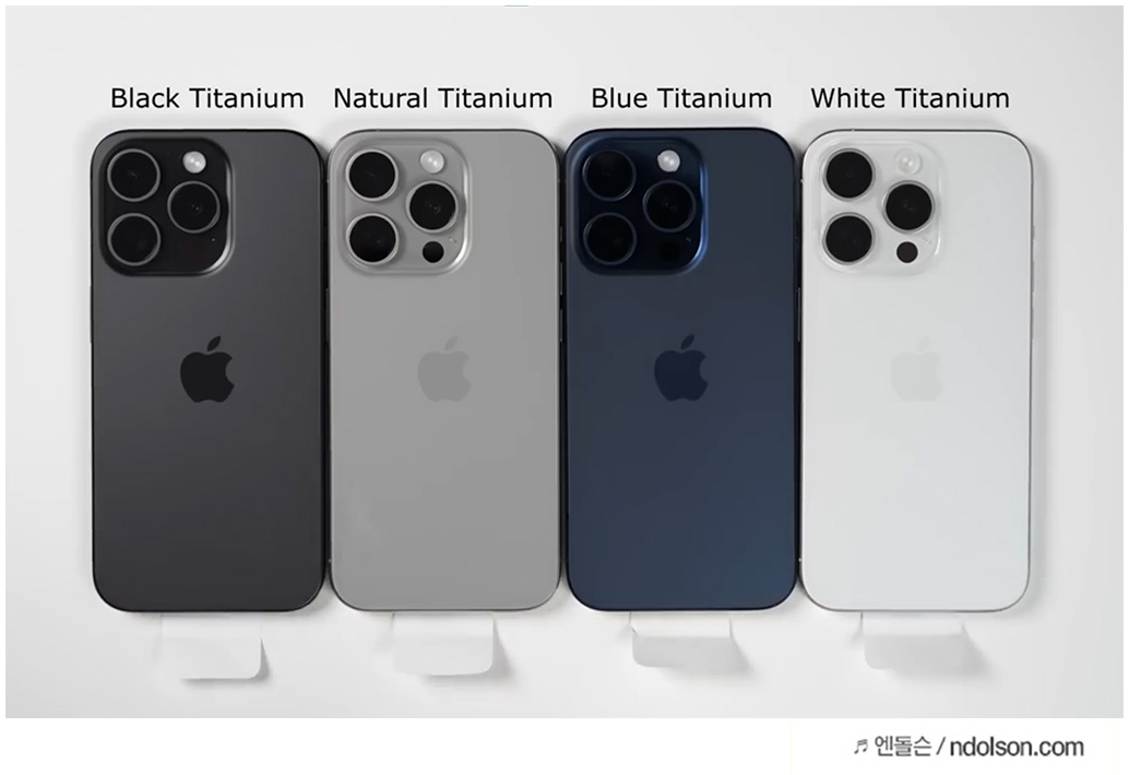 아이폰 15 내추럴 티타늄 색상은 쇠느낌이 좀 강한거 같아서 제외하였습니다. 하지만 애플의 신제품이라는 걸 티나게 들고 다니려면 내추럴 티타늄 더 이쁘기도 합니다.