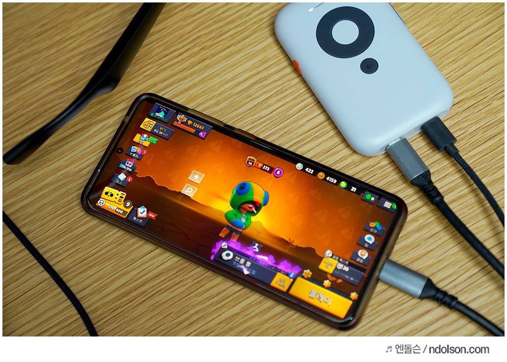 게임도 큰 화면으로 즐길 수 있습니다. 엑스리얼 에어(XREAL Air)와 엑스리얼 빔(XREAL Beam) 조합으로 평소 자주 하는 브롤스타즈(BrawlStars) 게임을 즐겨보았는데요. 생각보다 렉이 없습니다.