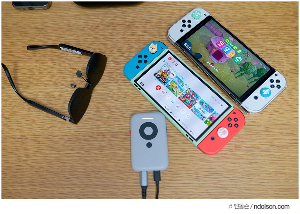 눈앞에 펼쳐진 거대한 화면에서 '동물의 숲' 게임을 즐기며, 닌텐도 스위치의 모든 게임을 체험할 수 있었습니다. '엑스리얼 에어(XREAL Air)'의 혁신적인 디스플레이 기술은 정말 놀라운 경험을 선사하였습니다.