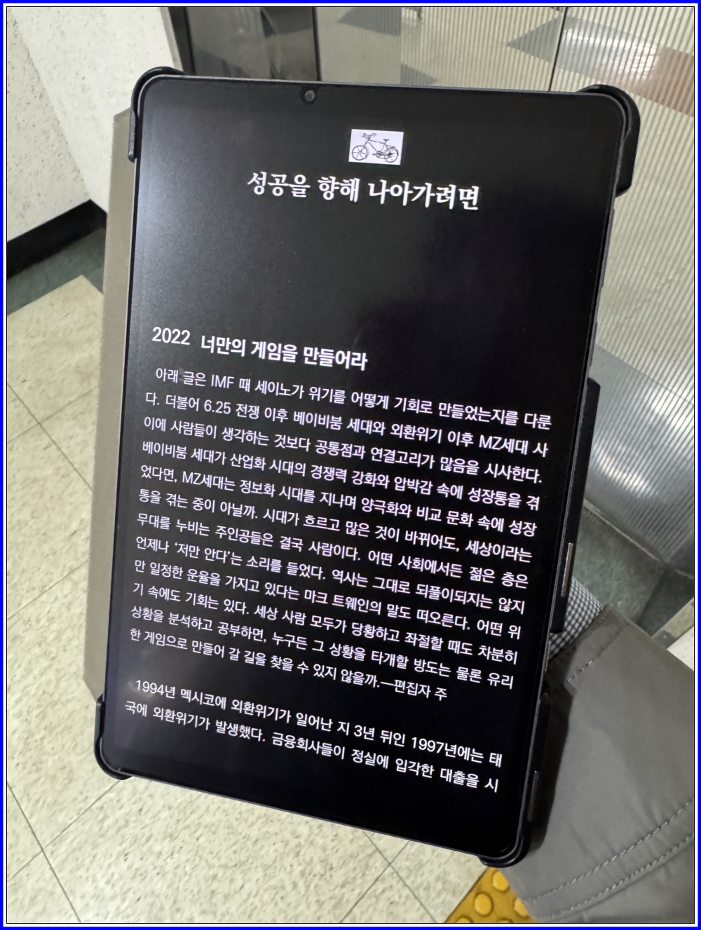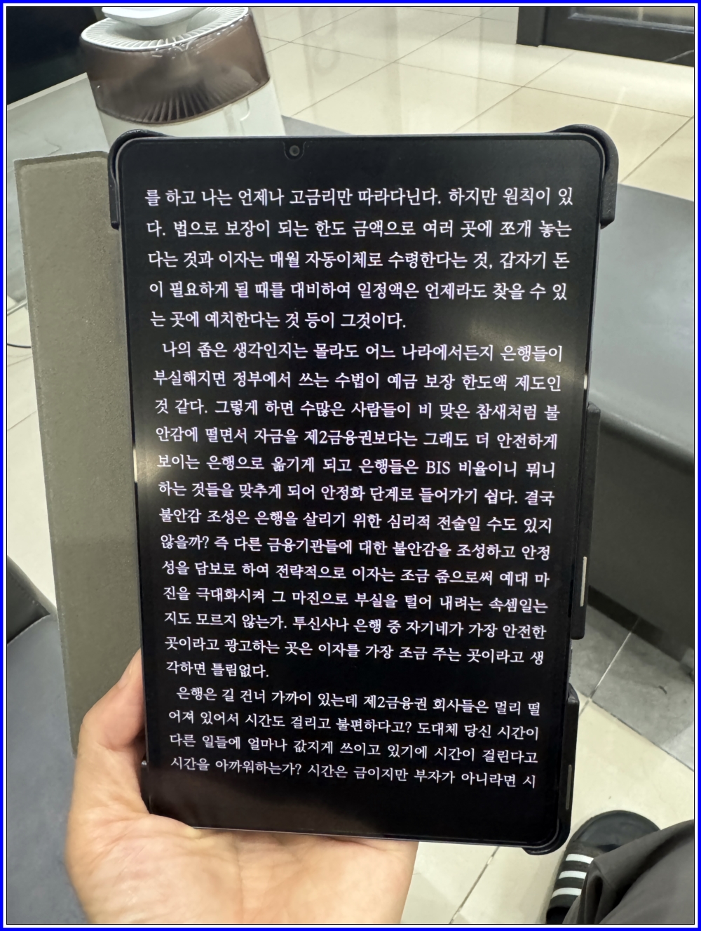 아쉬운 점은 지금은 세상에 도움이 되는 글을 남기는 등의 다른 자선 사업도 한다지만, 최근 기고된 최신 자료가 조금 부족해서 아쉽다. 읽기까지 조금 걸렸지만, 다시 또 읽고 싶은 책이다. 사람은 망각의 동물이라 충고의 책을 곁에 두고 또 읽어주어야 한다. 하지만 최신 기고글이 더 있으면 하는 바램이 든다.
