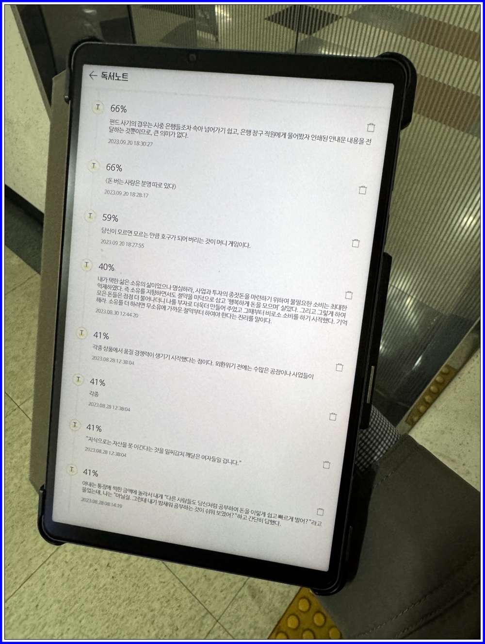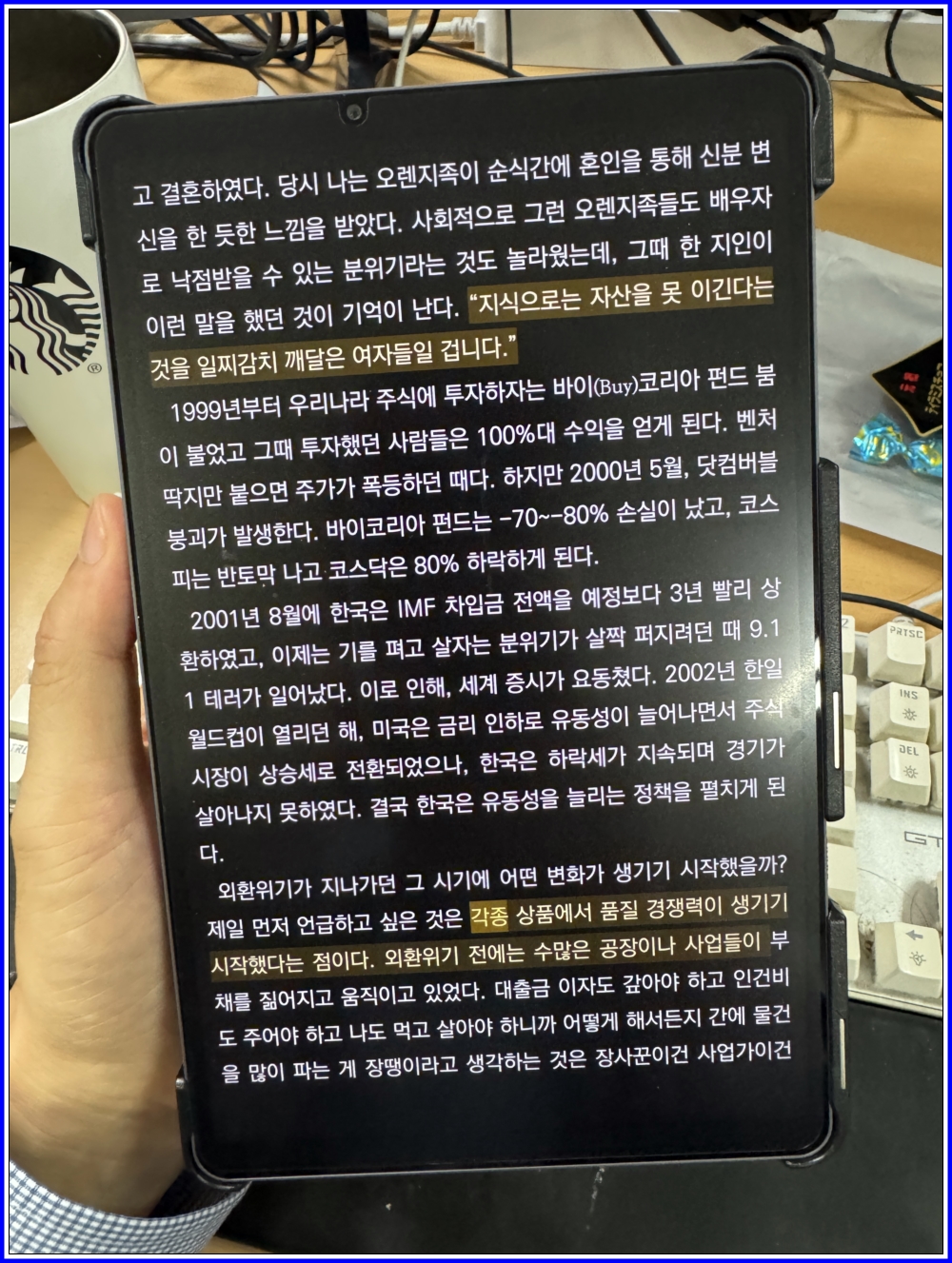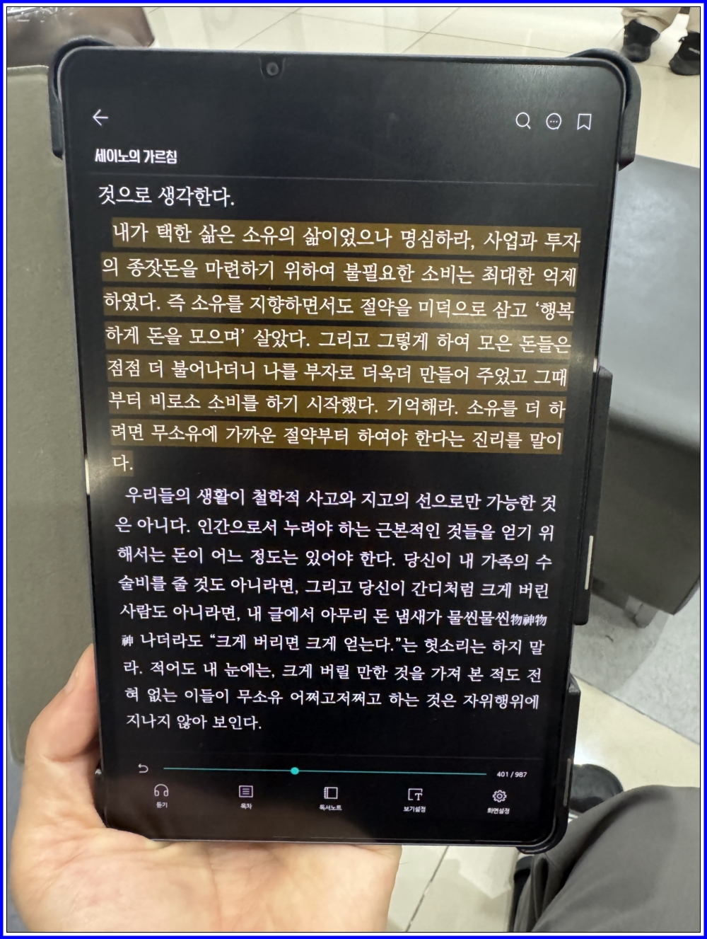 읽으면서 의미있는 말은 그대로 모두 형광펜으로 줄을쳐서 메모해두었습니다.