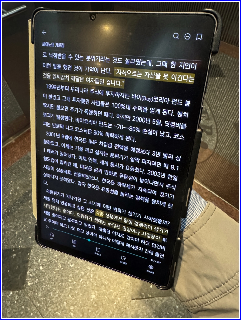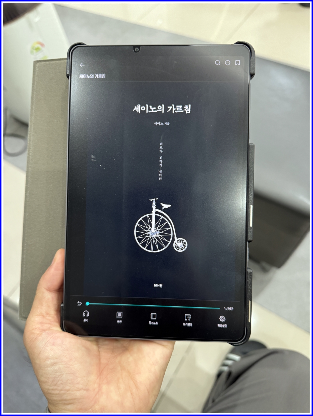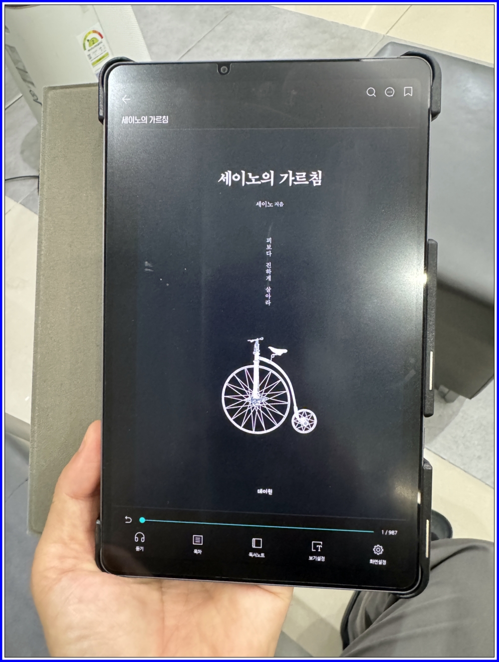 YES24의 크레마를 통해서 전자책(eBook)의 뷰어로 읽었습니다. 태블릿을 들고다니면서 PDF나 전자책을 읽기 유용하였습니다. 세이노의 가르침은 무료 전자책으로 공개되어 있습니다.