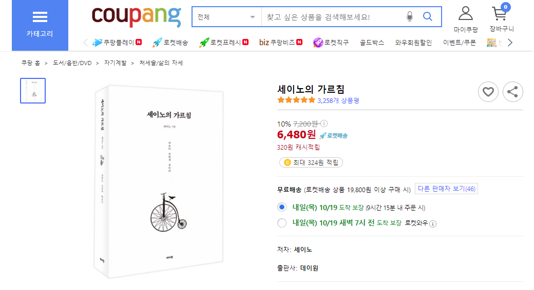 세이노의 가르침 쿠팡 로켓 배송 : https://link.coupang.com/a/bcSN9W