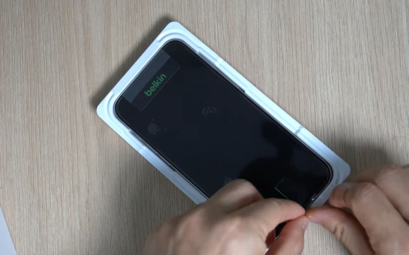 아이폰15에 벨킨 강화유리를 붙이는 중 기포가 발생하였습니다.
