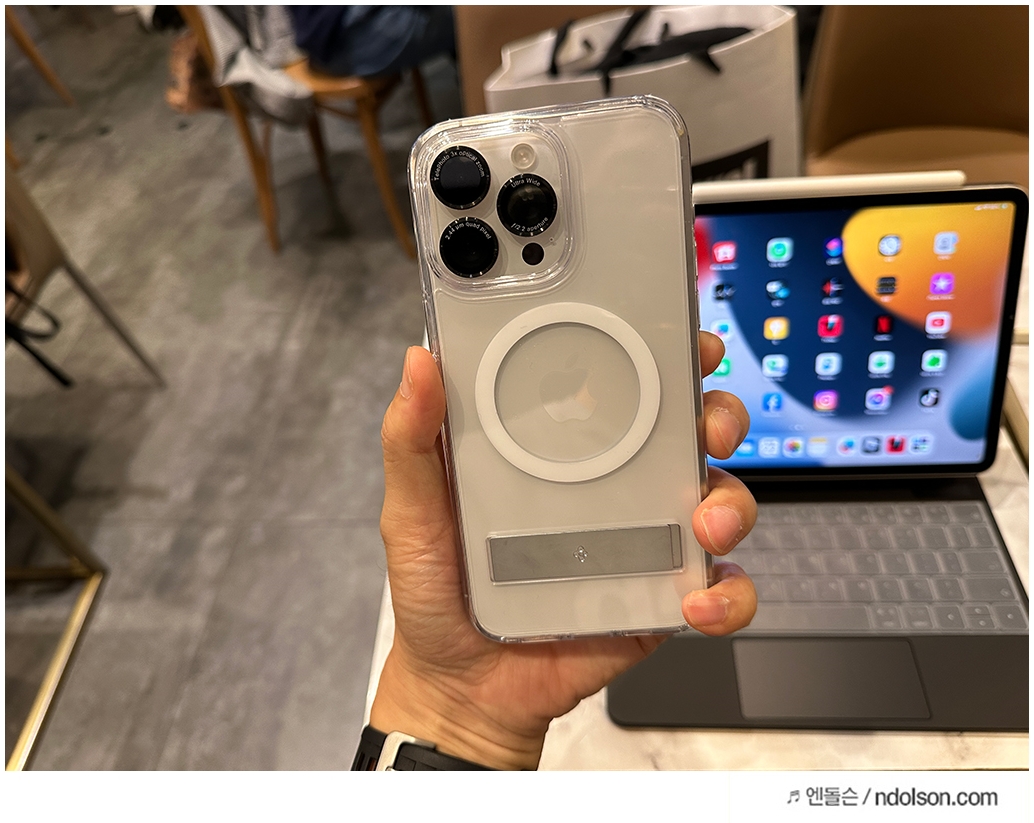 아무래도 아이폰 15 사용자들에게 강력하게 추천하고 싶은 이유는 이런 맥세이프 액세서리를 쓰면 활용성이 좋다는 점입니다. 특히 기능과 고급스러운 마감이 좋은 슈피겐 제품은 휴대성과 기능성, 그리고 스타일을 모두 갖추고 있어서 아이폰 15의 사용자 경험을 한 단계 업그레이드시켜 줍니다.