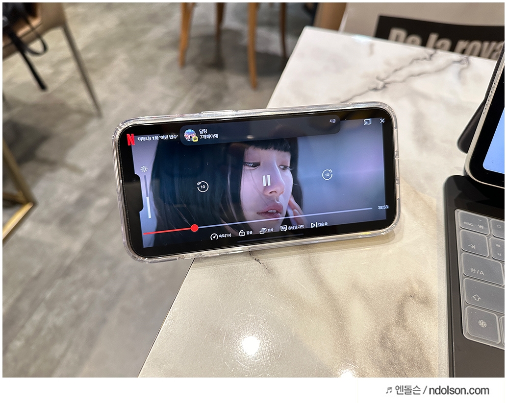 가로/세로를 모두 지원하기 때문에 활용성이 더 좋네요. 카페에서도 쉽게 영상 감상을 장시간 할 수 있네요.