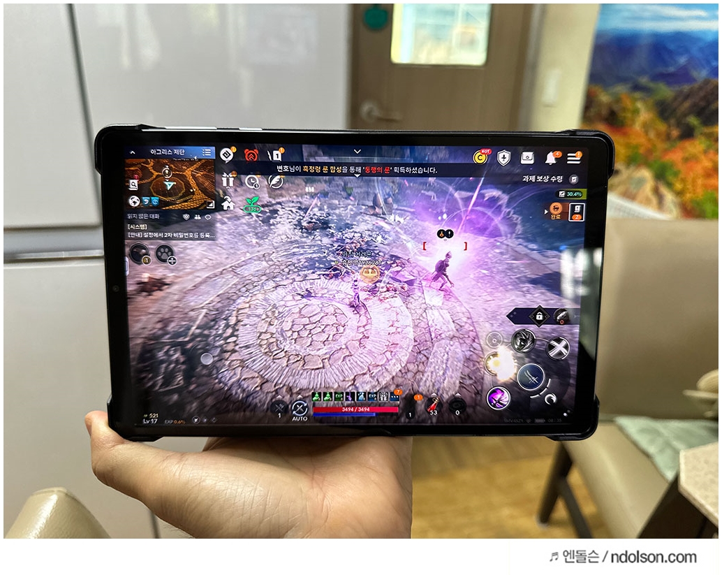 배터리 수명은 6550mAh 배터리를 탑재한 이 태블릿은 일반적인 사용 조건에서 약 6-7시간의 사용 시간을 제공하며, 게임을 진행할 때는 약 3.5-4시간의 사용 시간을 기대할 수 있습니다. 빠른 충전을 지원하며, 충전 완료까지 50분 정도 소요됩니다.