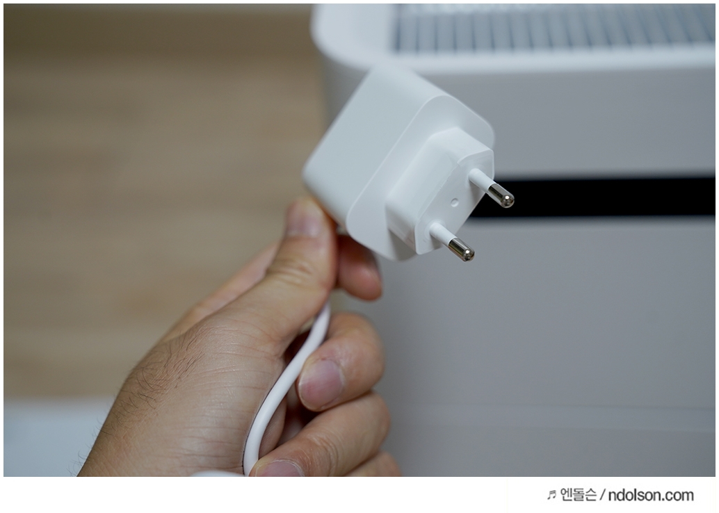 샤오미 스마트미 퓨어 3세대 가습기는 한국형 콘센트가 아니라 유럽 코드 방식이어서 돼지코가 필요하지만, 꽂기만 해도 사용 가능합니다.