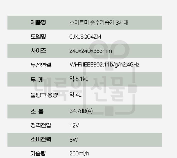 샤오미 스마트미 퓨어 3세대 가습기 스펙