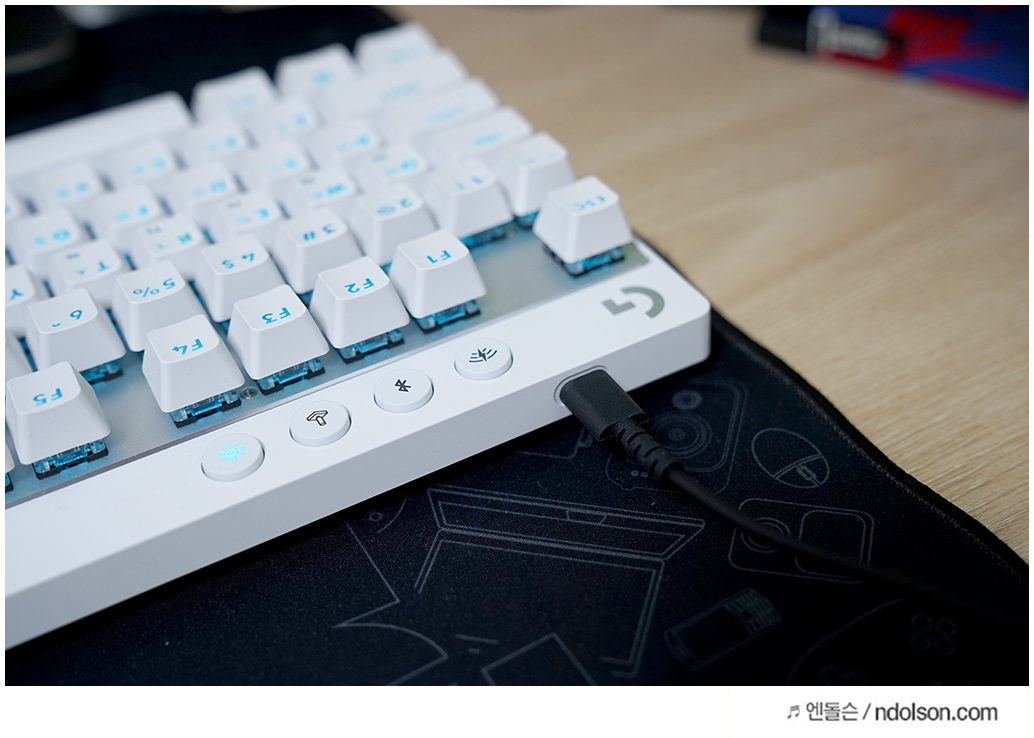 또 블루투스 및 유선 연결을 지원하기 때문에 게이밍 PC와 작업용 PC를 번갈아가면서 사용하는 유저들에게 편리합니다. 개인적으로 무선을 더 선호하지만, 유선 사용이 필요할 때 USB-C 단자 케이블에 연결하여 컴퓨터에 유선 키보드로도 사용할 수 있어 좋았습니다.